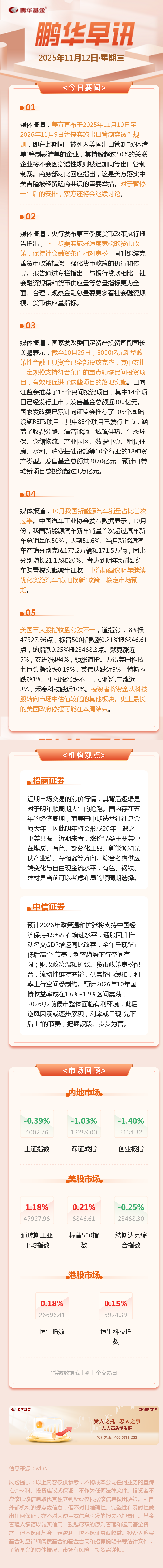 鹏华早讯11.12 央行发布第三季度中国货币政策执行报告