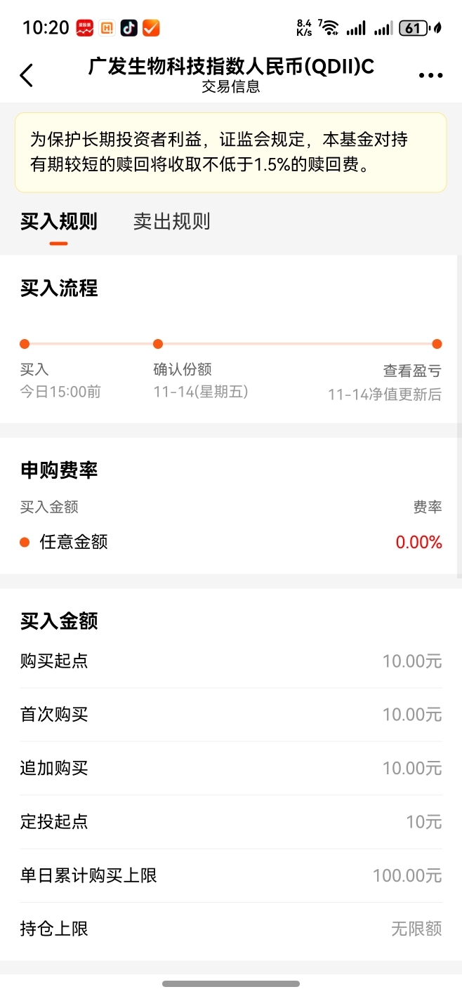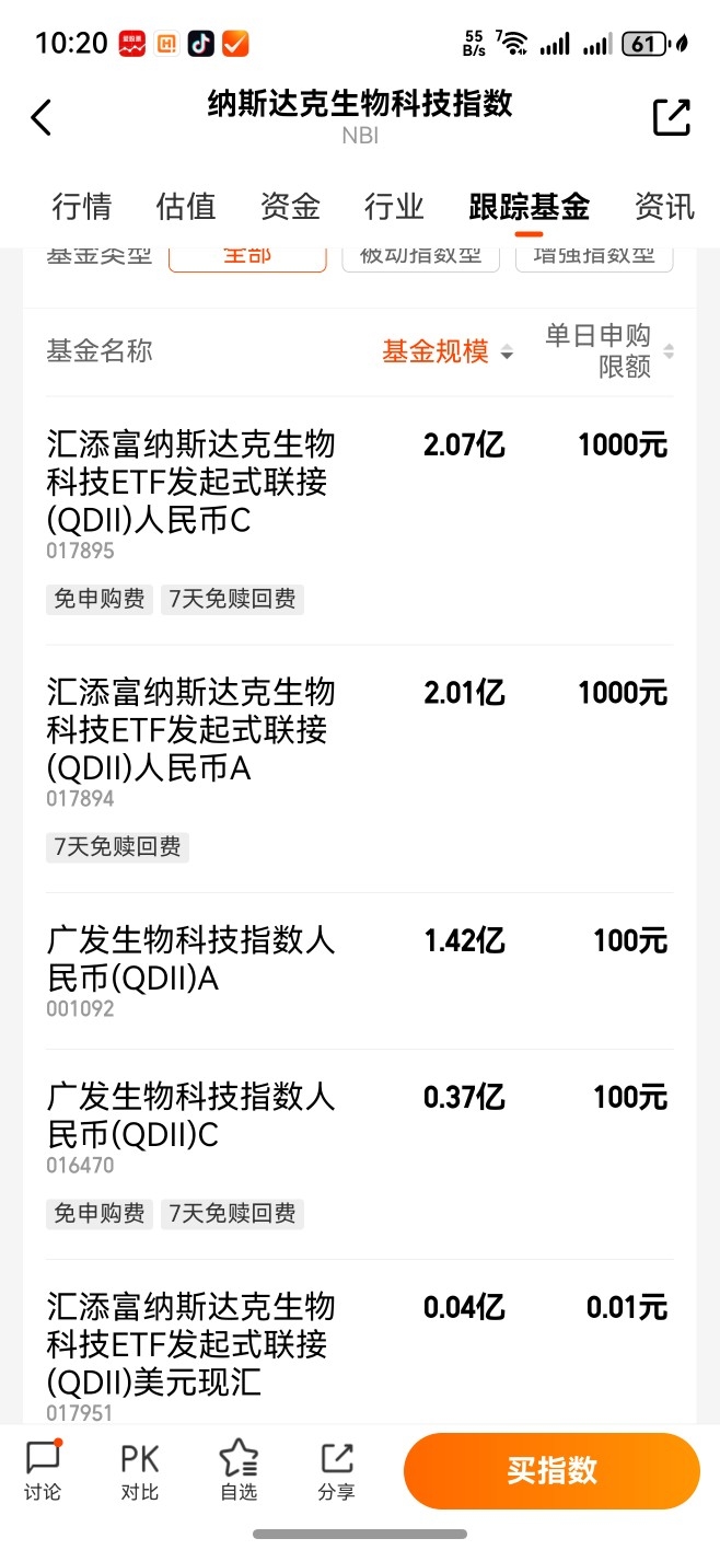根据对比来看,至于某发纳斯达克生物科技指数qdll基金,在每天限额超级低只能选择买10元的这个就可以考虑过滤掉了。