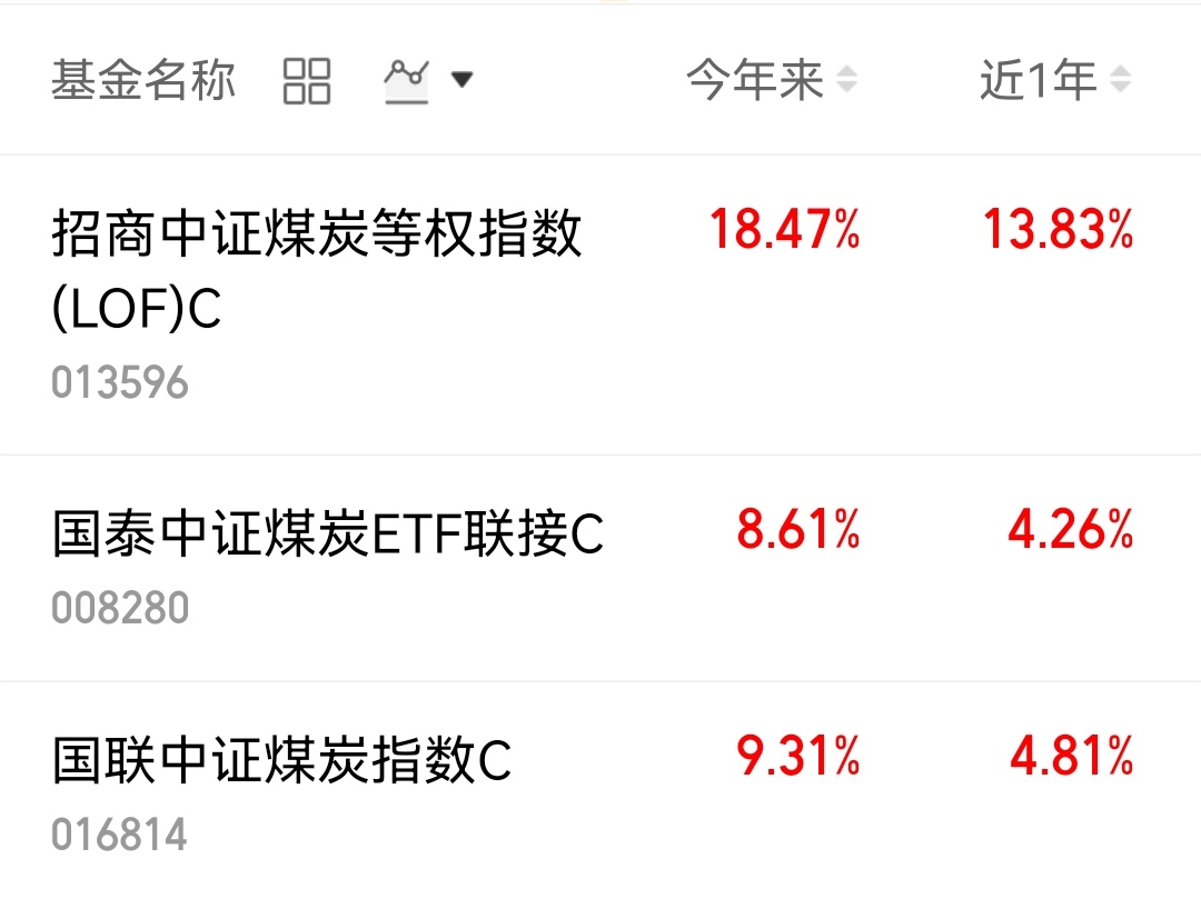 $招商中证煤炭等权指数(LOF)C(OTCFUND|013596)$近一年涨幅13.83%