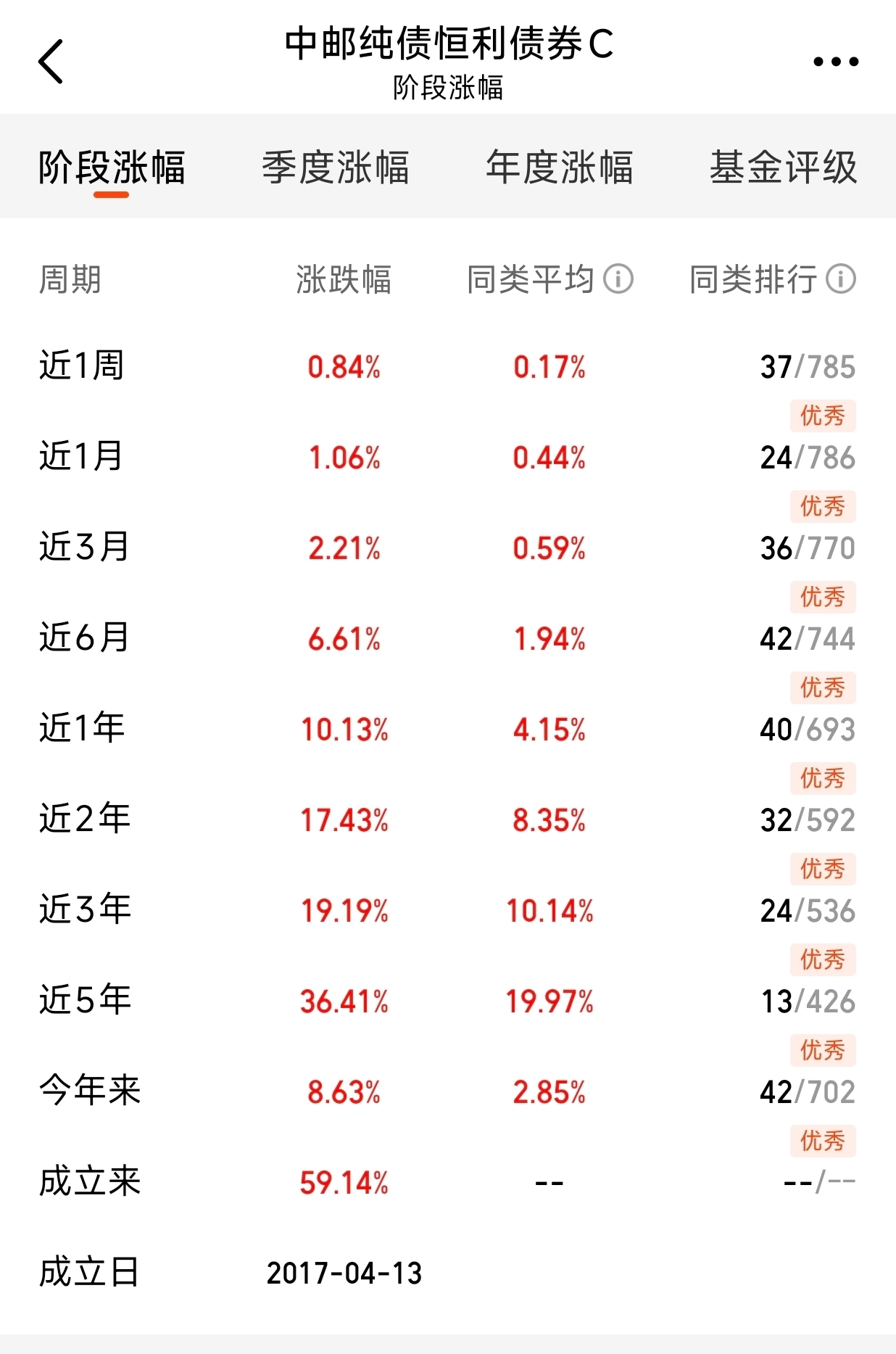 我在选择了“看好”昨天股市不是很好,债基还行吧,反正是稳住了,混债$中邮纯债恒利