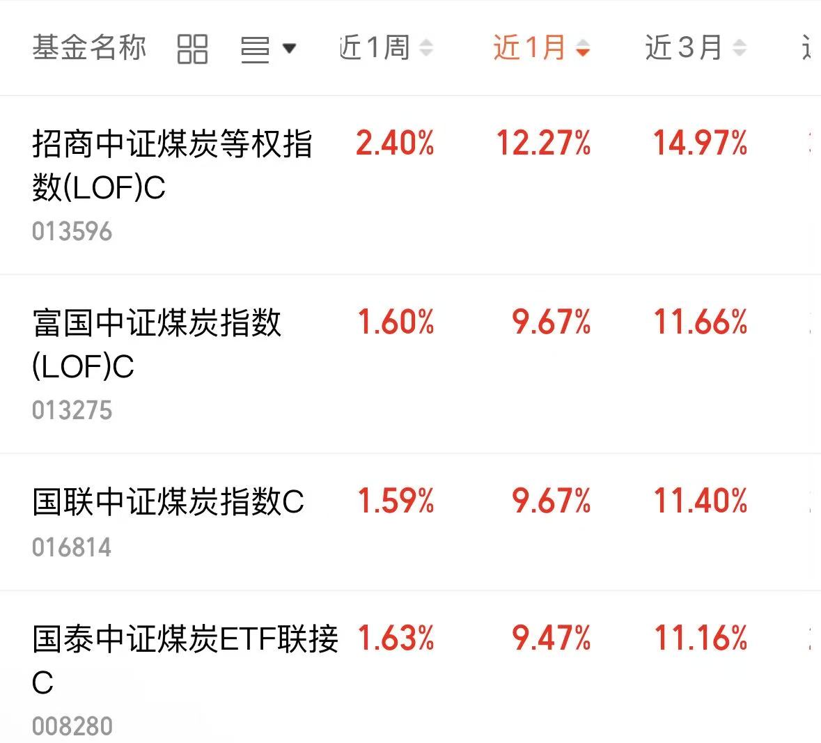 $招商中证煤炭等权指数(LOF)C(OTCFUND|013596)$近一月12.27%