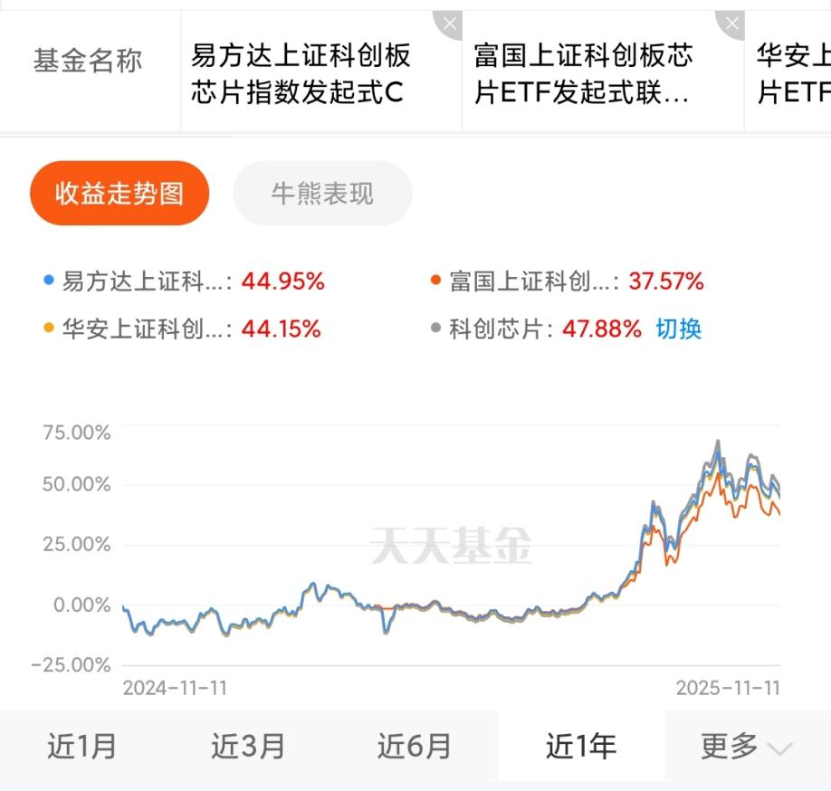 我对比了市面上的各大科创芯片基金,发现长期业绩上,$易方达上证科创板芯片指数发起式C(OTCFUND|020671)$要强于跟踪同指数的其它基金,科创芯片本身有较好的质地和优秀的弹性,我今天直接买入5000元进行布局,既然看好,那就用真金白银说话,我会持续跟踪跟大家分享!