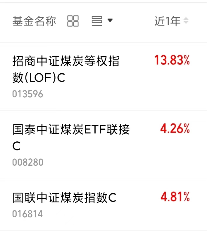$招商中证煤炭等权指数(LOF)C(OTCFUND|013596)$近1年收涨13.83%。
