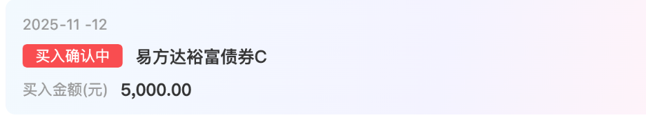 $易方达裕富债券C$+加5k,今日继续加仓这只比较稳健的固收+基金,近一年收益率达到9.17%,投资布局是典型的“债券打底,股票增强”,大部分钱放在信用债上吃票息,然后拿接近20%的仓位买股票博取更高收益,股票部分持仓偏电子、通讯这些成长板块。格格也持有一段时间了,感觉很不错,债市回调时能扛住波动,股市上涨时又有一定弹性。整体波动和回撤都能有效控制,真正做到了稳中求进。而且满7天就没有申赎费,操作上灵活不少,不过我决定长拿,毕竟今年以及明年,非常看好后续行情。