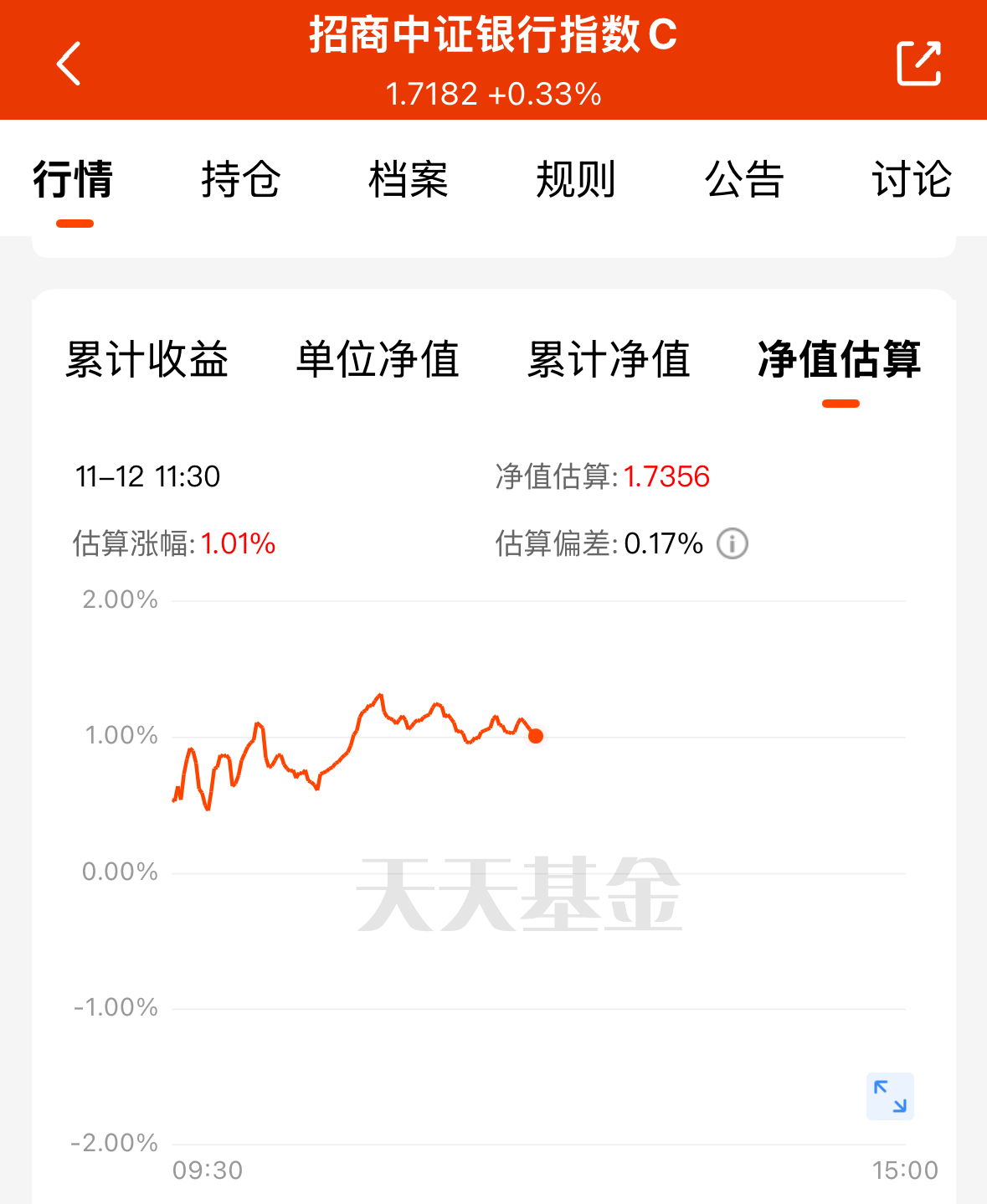 今天科技冲高回落,银行板块逆势拉升,农行、工行创新高,红利资产妥妥的避风港啊!为啥选A股银行?现在境内无风险收益率不到2%,港股虽股息率高,但港股通要扣20%税,实际到手收益没有那么高。A股银行股息率超5%,再加上流动性更好,政策托底银行化解地产风险,估值修复空间大。$招商中证银行指数C(OTCFUND|014028)$今天估值+这基近%,一月涨7.63%,回撤不大,加仓吃稳稳的股息红利。
