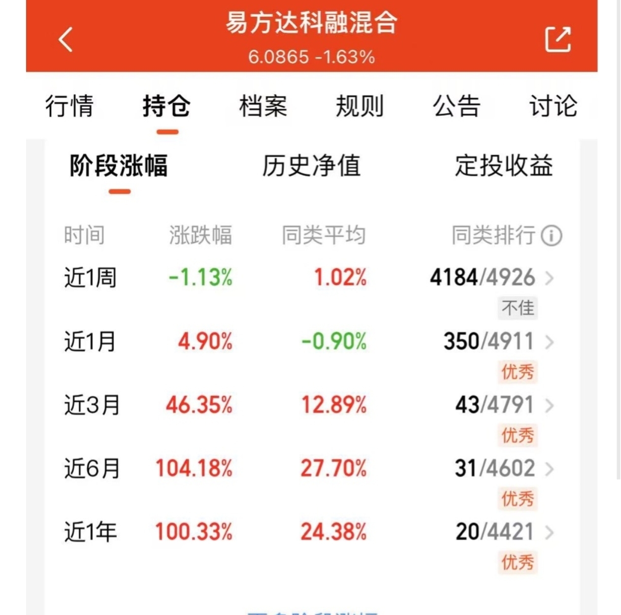 今天的市场走得有点磨人,开盘就不太给力,中间挣扎着翻红了一下,结果又被按回去了。不过我的想法没变:科技这条线还是主线,眼下这点波动就是正常调整。等这阵子震荡过去,估计还能接着往上走。我准备趁着调整再加点仓,主要盯着易方达科融混合,它既投A股也配港股,科技和新能源都覆盖,长期表现挺稳当。还有个科讯也不错,策略差不多,不过只投A股市场。