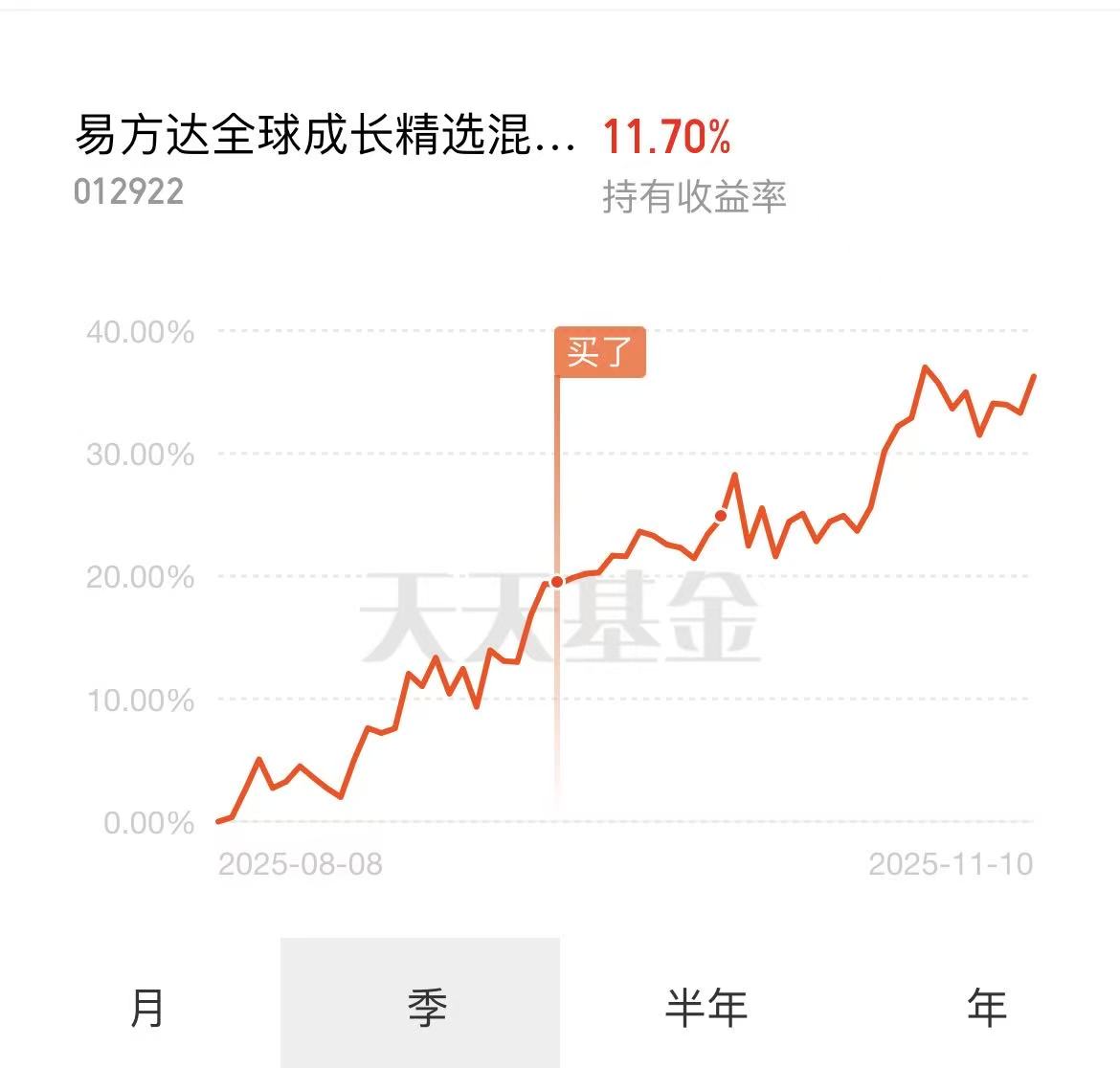 今天港股高开走低,A股低开低走,市场反差比较大,美股这几天修复的也不错,单一市场机会比较难压,一不小心就容易站在山顶了,我持仓的$易方达全球成长精选混合(QDII)人民币C(OTCFUND|012922)$是投资多地市场科技板块的,有A股美股和港股市场,目前收益也不错,回撤控制也强,经理管理能力出色,我就继续持仓待涨啦!$建信纳斯达克100指数(QDII)A人民币(OTCFUND|539001)$ #钙钛矿电池获重要进展 发展前景看好吗?# #大消费板块逆市拉升!行情能否持续?# #科技小登大揭秘#