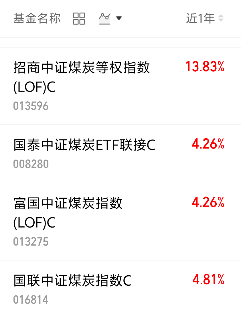 $国联中证煤炭指数C(OTCFUND|016814)$近一年涨了4.81%