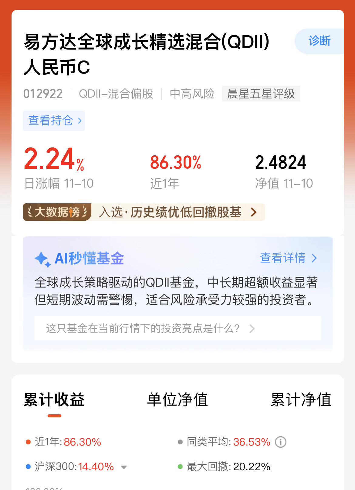 隔夜软银清仓英伟达带跌美股科技,但我持有的易方达全球成长精选混合(QDII)没受啥影响,它不局限美股,还投A股、港股科技标的,昨天收涨2.24%,近三月涨36.27%,近半年涨幅超83%,远超同类。经理调仓很灵活,能避开单一市场风险,这种全球分散布局在震荡里抗跌又能吃红利,我打算接着拿。