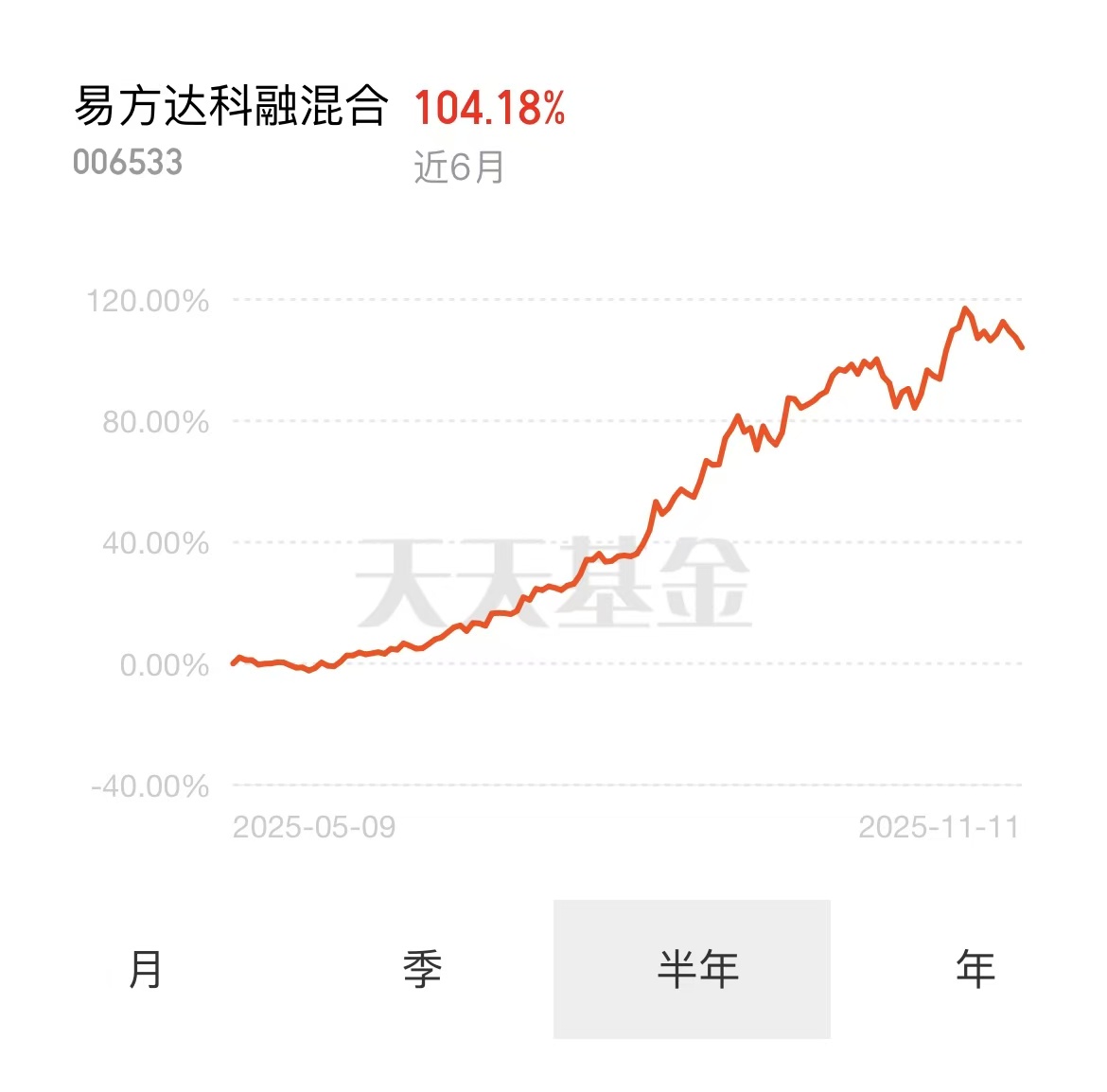 最近科技板块调整幅度比较大呀,今天继续下跌呢,不过咱们社会在进步,科技发展迅速,央行三季度报告明确强化科技金融支持,国产算力替代、AI产业落地等等,都是说明科技方向前景广阔。$易方达科融混合(OTCFUND|006533)$是聚焦A股和港股市场的,科技+新能源标的,近六个月涨幅104.18%,盈利强。 #特斯拉拟建新厂生产Optimus人形机器人# #科技小登大揭秘# #科技热点摊开业啦# $永赢先进制造智选混合发起C(OTCFUND|018125)$