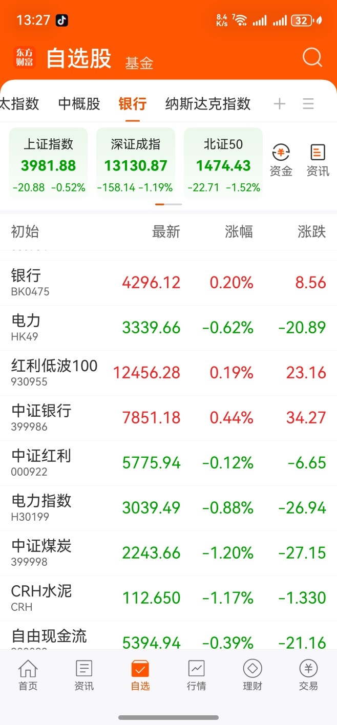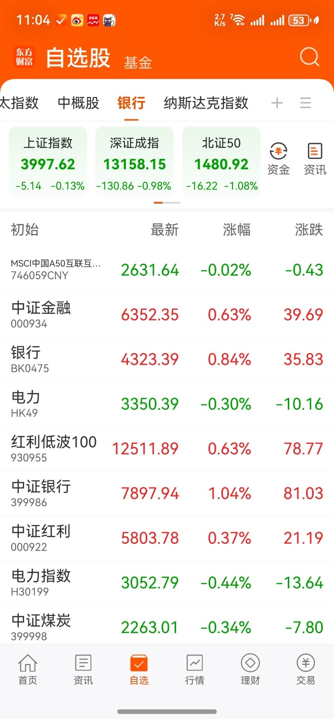 在今天下午的时候,观察银行、红利,这些行业板块指数,在今天下午也开始跳水回落下来变小涨了。