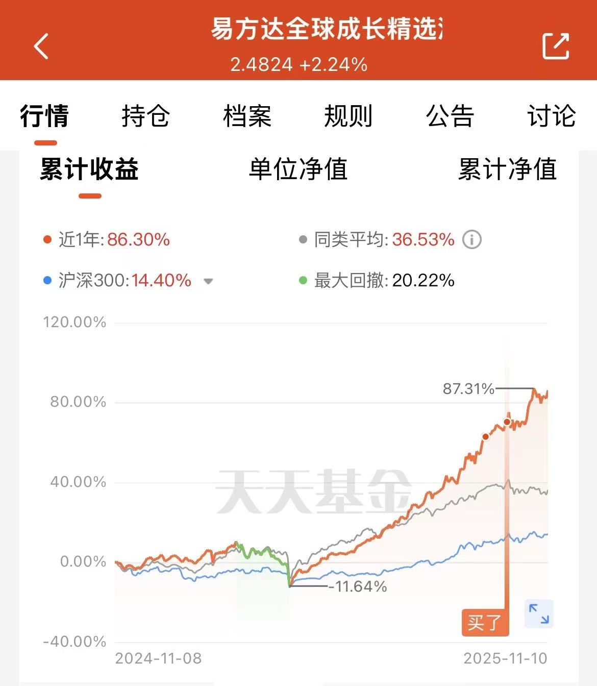 我的天啊,今天大A调整幅度更大呀,全市场超过3700只个股是下跌的,科技、军工等等都回调了,港股也高开回落了,美股近期修复的比较强,所以我更喜欢三地市场结合的基,易方达全球成长精选混合C就是投资A美和港股市场的,主要是布局科技方向,年化收益率86.3%,业绩出色,经理调仓能力也强,我继续看好未来。 $宝盈纳斯达克100指数发起(QDII)C人民币(OTCFUND|019737)$ #大消费板块逆市拉升!行情能否持续?# #科技小登大揭秘# #科技热点摊开业啦#