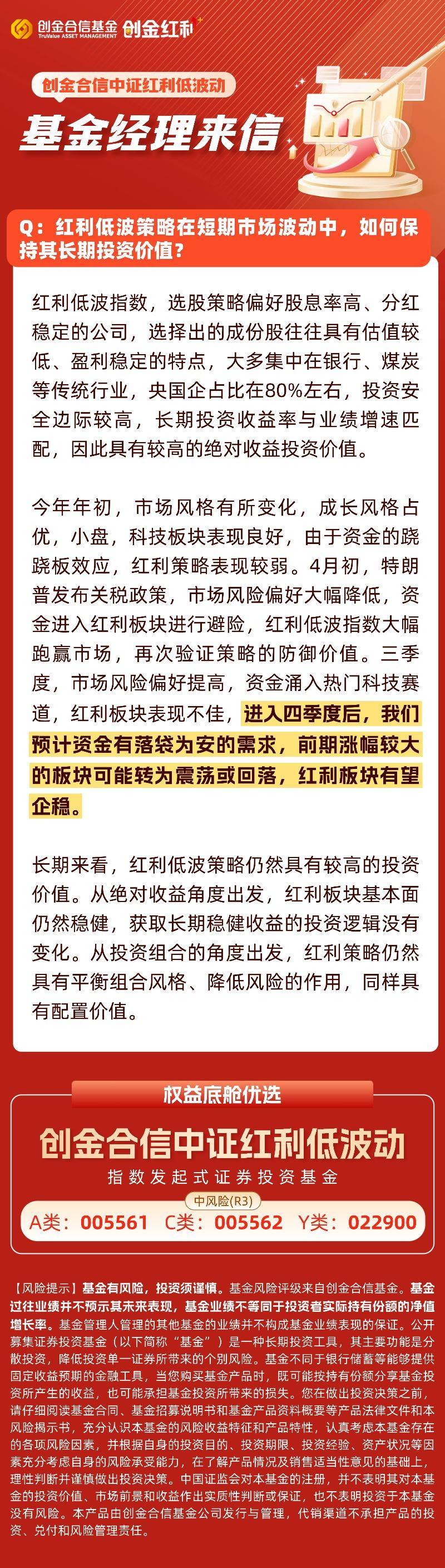 红利低波仍具有较高的投资价值 >> $创金合信中证红利低波动指数C(OTCFUND|005562)$