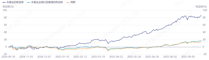 数据来源:iFinD,数据区间:2024.9.30-2025.9.30,基金区间业绩经托管行复核。指数的过往表现不代表未来,也不代表市场及产品的未来表现。基金的过往业绩不代表基金的未来表现,基金有风险,投资需谨慎。