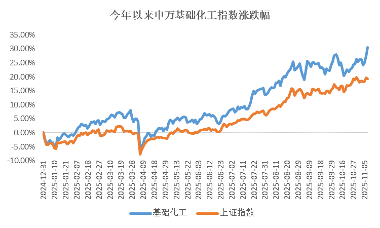 当内卷成为多个行业的痛点,政策层面的“反内卷”浪潮正为产业升级注入新动能。作为国民经济重要支柱之一的化工行业,在反内卷政策催化作用下逐步显现出拐点。根据iFinD数据,截至2025年11月7日,今年以来申万基础化工行业指数上涨30.53%,跑赢上证指数11.28%。整体来看,化工板块或正在成为布局顺周期行情的重要方向之一。(数据来源:iFinD,截至2025.11.7。指数过往表现不代表未来,也不代表基金的未来表现。基金有风险,投资需谨慎。)