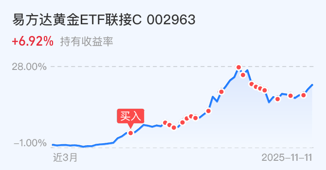 $易方达黄金ETF联接C$黄金个人忽略短期波动,温合手工定投的方式参与,躺平中。