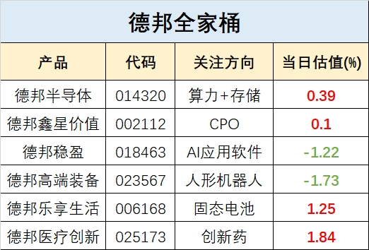 德邦全家桶今日估值来了$信澳业绩驱动混合C$$永赢先进制造智选混合发起C$$德邦
