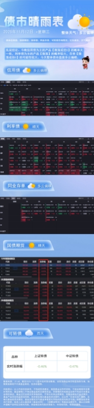 先说结论:今晚信用债为主大的产品【微涨或挂0】的概率大一些,利率债为主的产品【微涨】的概率较大,存单【微涨或挂0】的可能性较大。今天整体债市盘面多云偏晴。