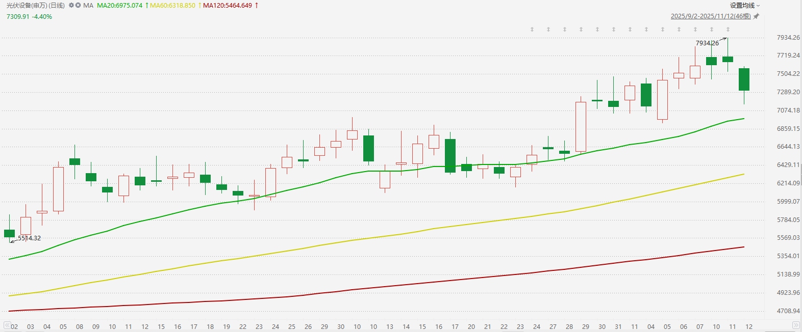 从技术形态上看,光伏设备指数的上行趋势并未被一两天的调整破坏,后续可以继续观察一下。