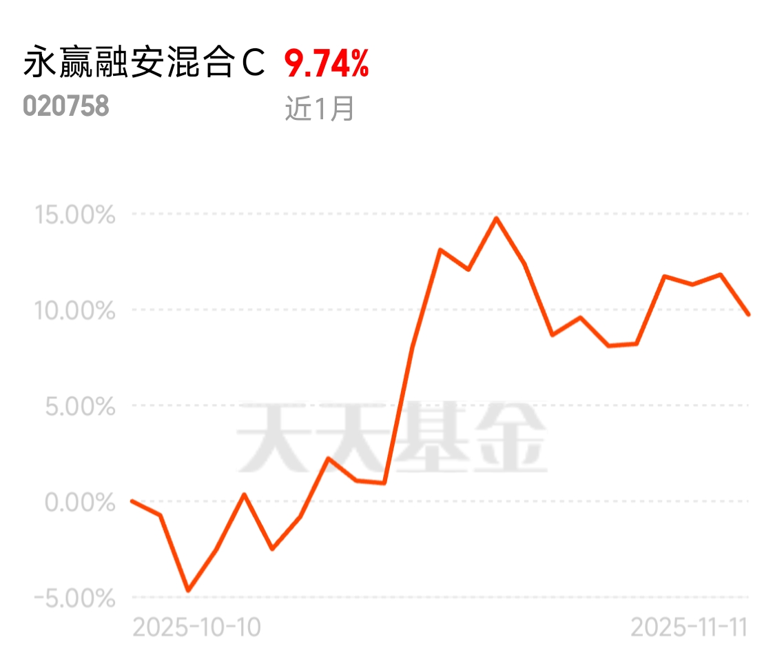 今天三大指数回调,各个赛道似乎都没有拉升起来,但是综合性的$永赢融安混合C$今天