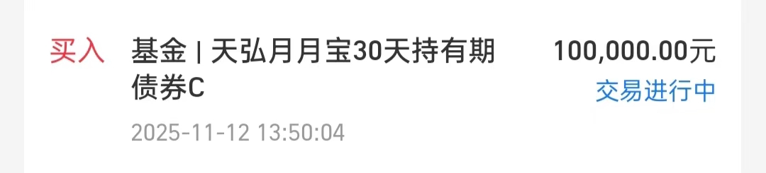 个人操作:上车短债基:$天弘月月宝30天持有期债券C(OTCFUND|022306)$,我加10万元。