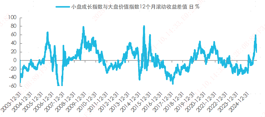 图:A股小盘成长与大盘价值的收益差值有较强的均值回归效应