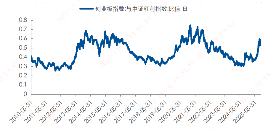 图:创业板指与中证红利指数的相对表现经历了多轮变化
