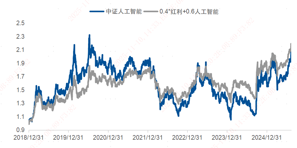 举例来看,自2019年以来若单一持有中证人工智能指数,虽然总收益不错,但中间经历的波动、回撤均较大,投资者的体验可能不好,而如果在这里面采取40%中证红利、60%人工智能的组合投资方式,也许在收益相近的情况下,能够具备更小的波动与回撤,投资者能体会到均衡带来的积极意义。