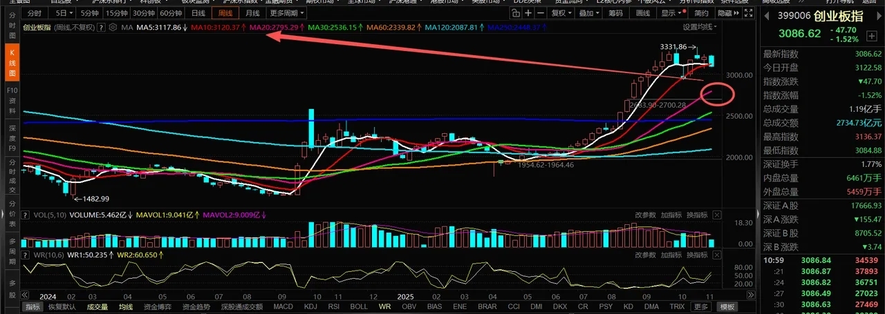 所以,接下来从周线级别来看,要关注创业板能否守住3000点的位置,这个点位守不住的话,创业板还可能会回到2800点附近;