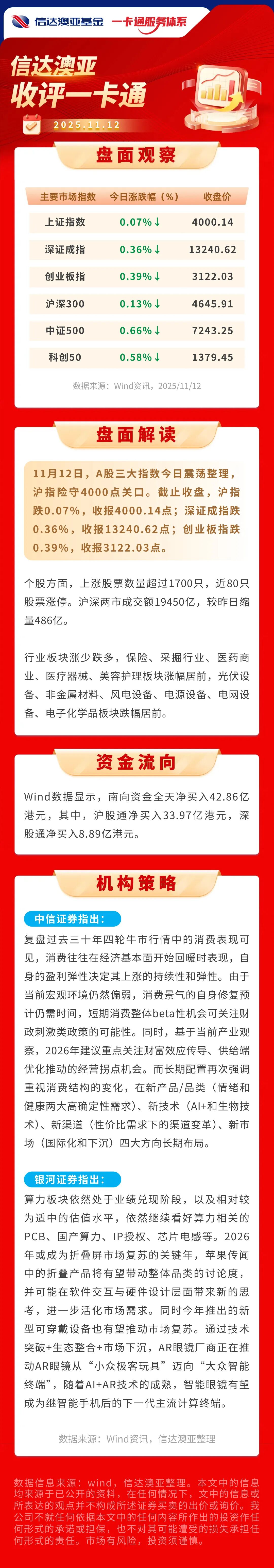 【收盘点评】A股三大指数今日震荡整理,沪指险守4000点关口。