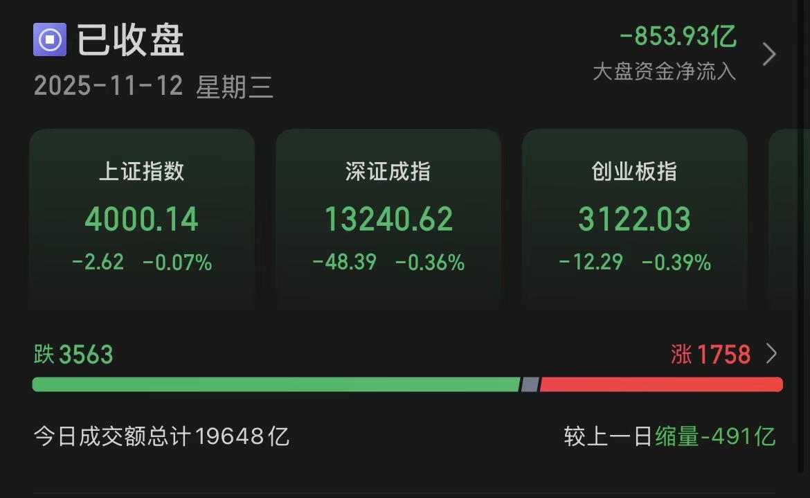 11月12日,A股市场三大指数小幅收跌,但内部结构差异巨大。代表大盘蓝筹的上证50指数逆势收涨0.32%,而偏成长的科创50指数跌幅较大。资金风险偏好下降,更倾向于流入估值低、确定性高的防御性资产。港股市场呈现量价齐升态势,地产及消费板块领涨,新能源和科技巨头板块承压。