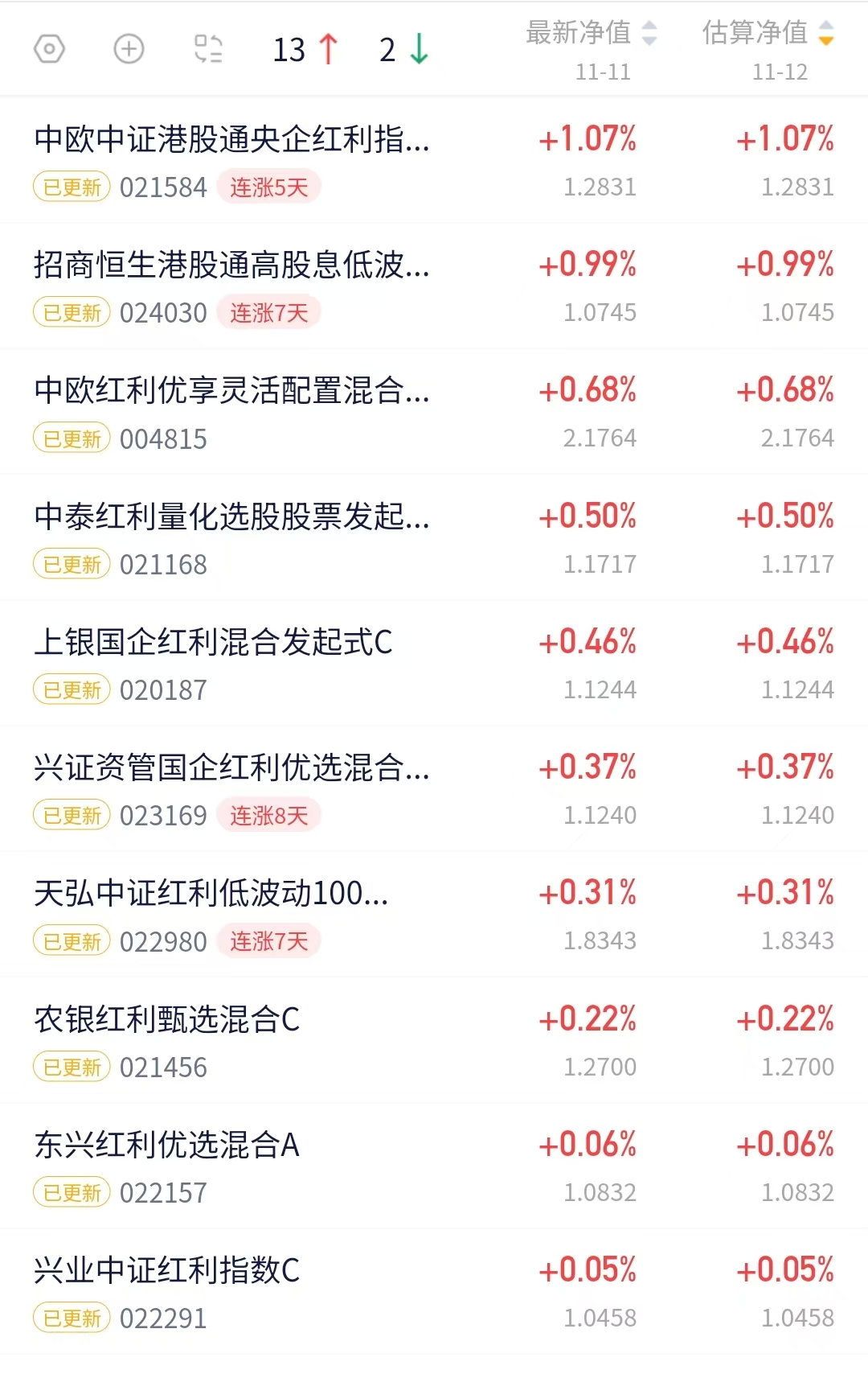 红利赛道基净值播报~