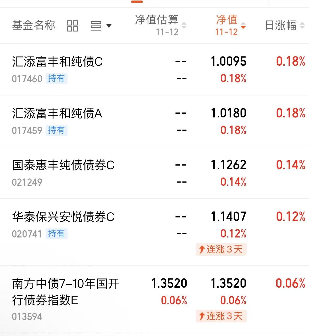 $南方中债7-10年国开行债券指数E(OTCFUND|013594)$收6个,连红3天了,不错!