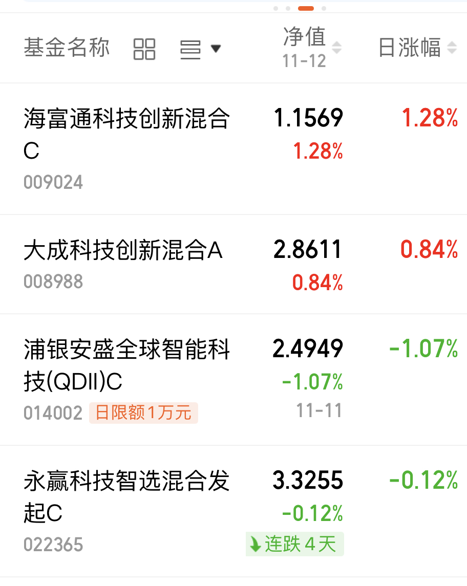 今日大盘震荡走低,三大指数集体收跌,沪指微跌0.07%,深成指、创业板指跌幅超0.3%。科技板块随市场调整,医药、油气等板块逆势走强,不过科技基也有逆势上涨的,一起来看净值情况。