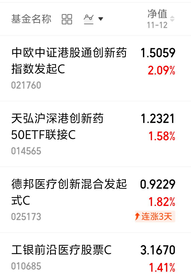 $中欧中证港股通创新药指数发起C(OTCFUND|021760)$今天涨了2.09%