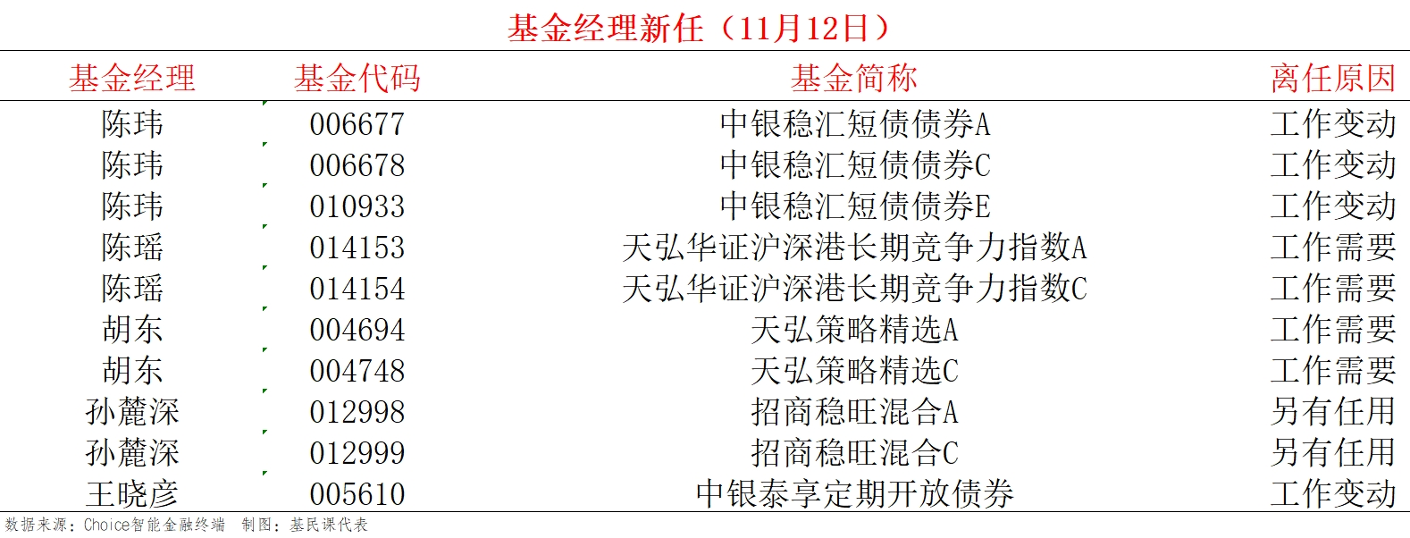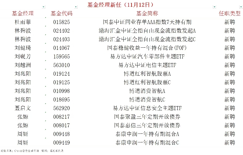 新聘9人,涉及15只基金。离任5人,涉及10只基金。