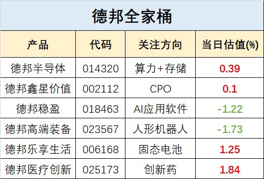 德邦全家桶今日估值来了$太平行业优选股票C$$德邦半导体产业混合发起式C$$东方
