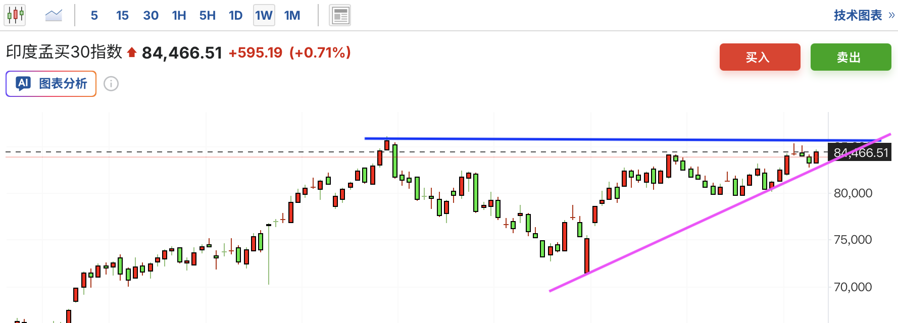 印度指数近期在上行途中受阻盘整,最近尝试回升,但再次受阻于最高点,目前在压力位下盘整,突破才能迎来新的行情。这几日反弹,有回升迹象。
