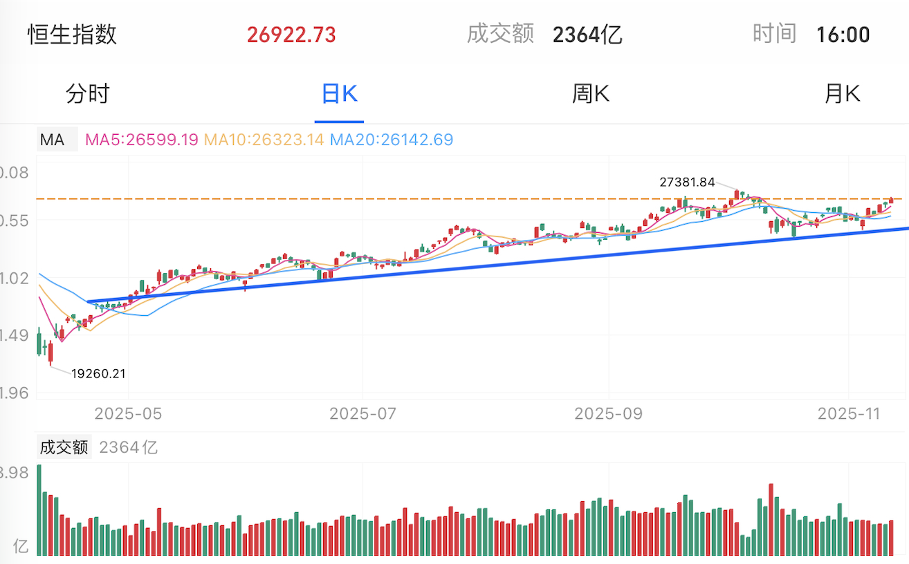 主要驱动因素是科技与医疗科技股领涨:京东健康国际上涨5.8%,阿里巴巴健康信息技术有限公司上涨3.6%。