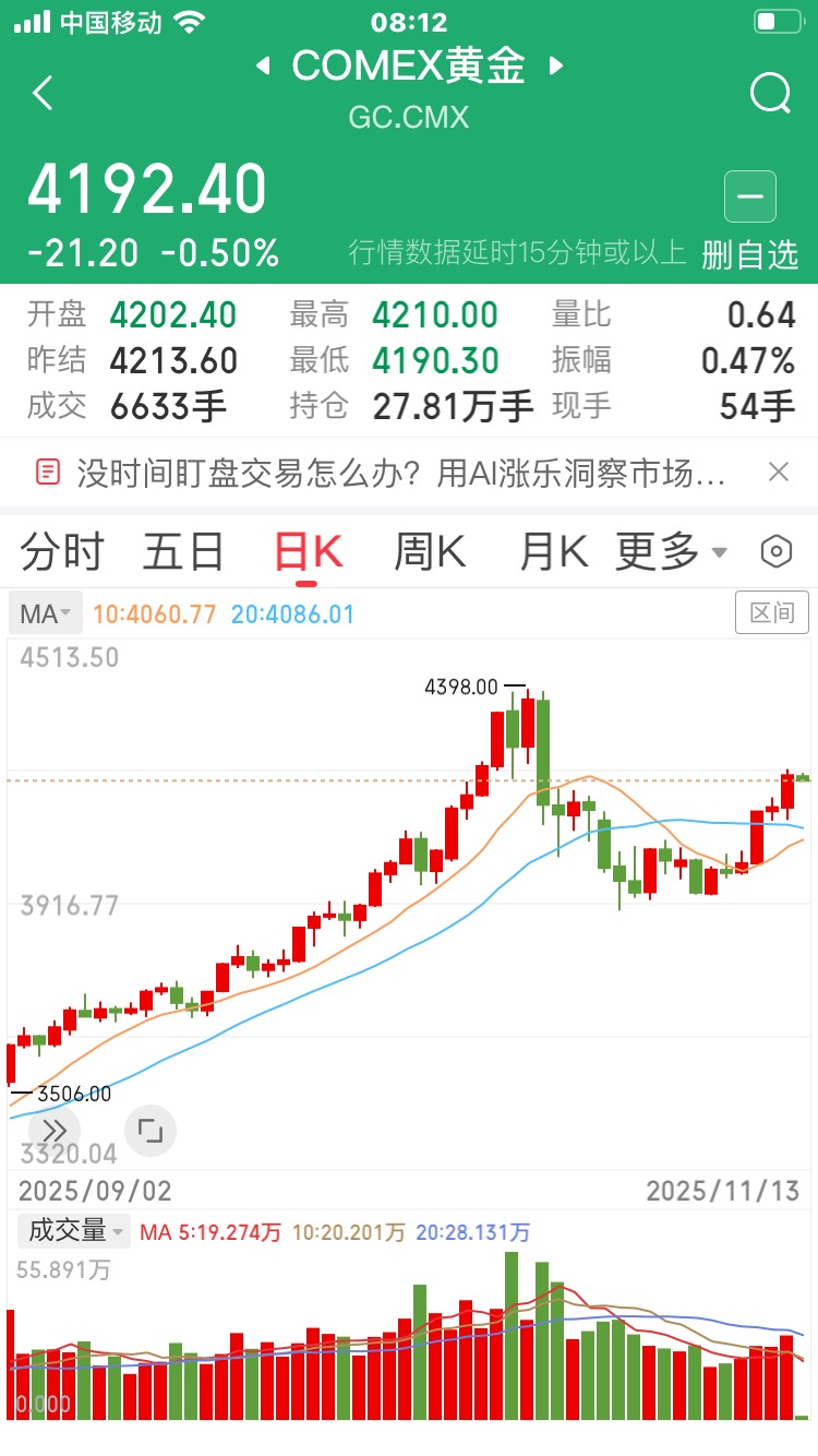 12日夜间,黄金上涨2.07%,白银大涨4.9%,ICE布油大跌3.73%。