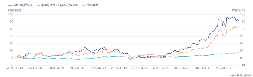 数据来源:iFinD,数据区间:2024.9.30-2025.9.30,基金区间业绩经托管行复核。指数的过往表现不代表未来,也不代表市场及产品的未来表现。基金的过往业绩不代表基金的未来表现,基金有风险,投资需谨慎。