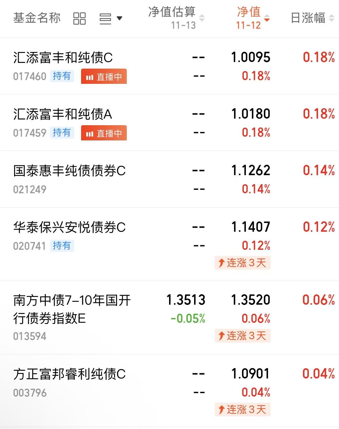 宝子们嗷,这两天债市的表现不错!利率债连续回暖,自从央妈买卖国债落地兑现,行情比前几月好太多了,$汇添富丰和纯债C(OTCFUND|017460)$昨天收18个蛋,持仓超长国债,债基里的战斗猛基,大长腿,反弹起来是很猛的,做波段合适。