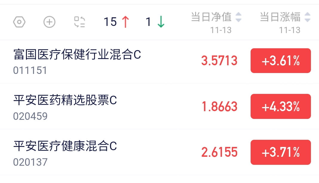 $平安医疗健康混合C$ 近一年上涨46.57%,在震荡里妥妥的绩优选手,今天估值再涨3.71%,实力没话说。医疗+科技双风口加持,赛道逻辑超硬。