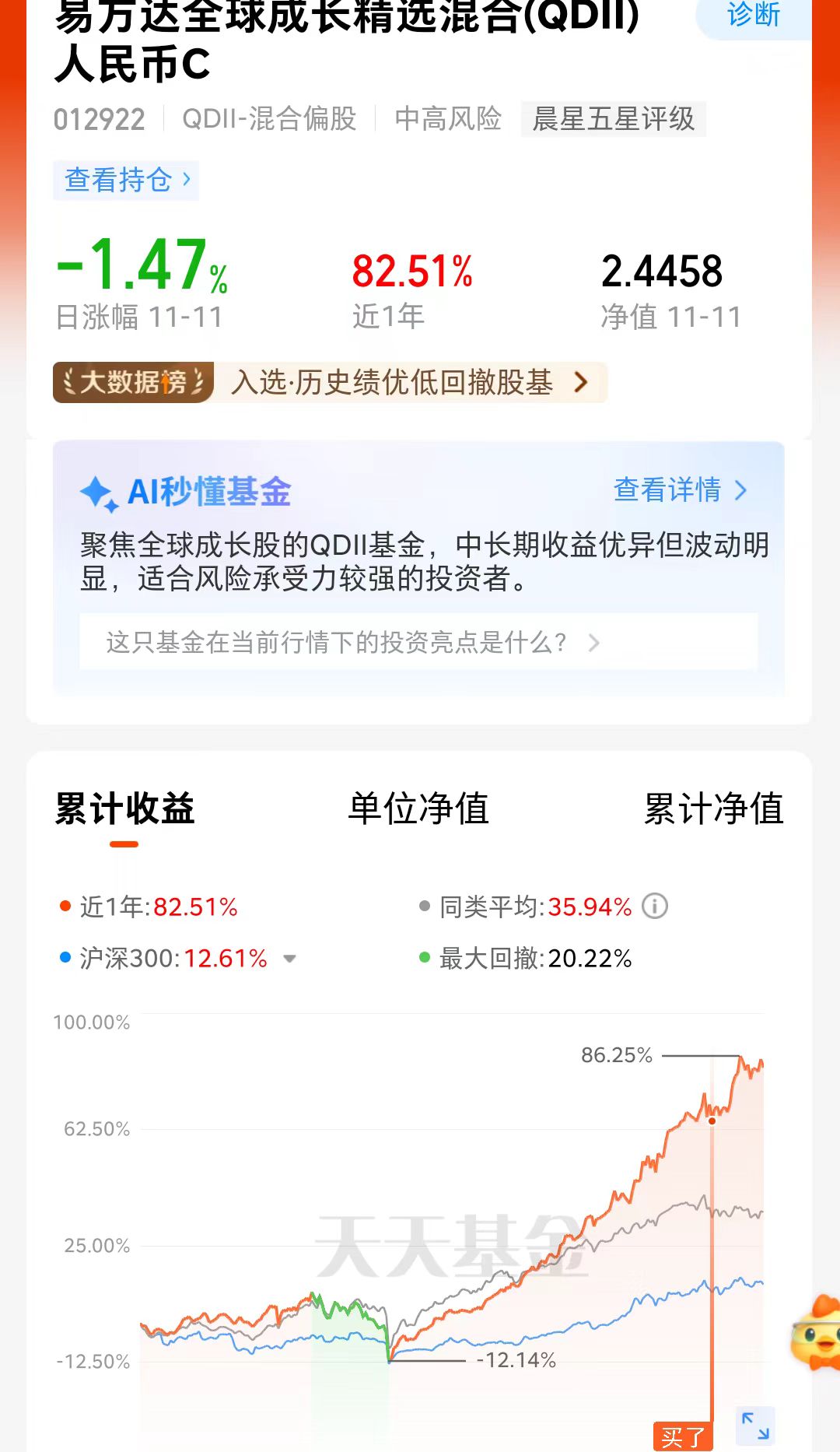 今天股市行情反弹了,科技板块也反弹呢。我持仓的$易方达全球成长精选混合(QDII)人民币C(OTCFUND|012922)$布局了全球科技,可以全球范围内调仓,有效控制回撤。从他的财报中就能看出对全球市场的敏锐布局,跟着基金经理吃肉啦。
