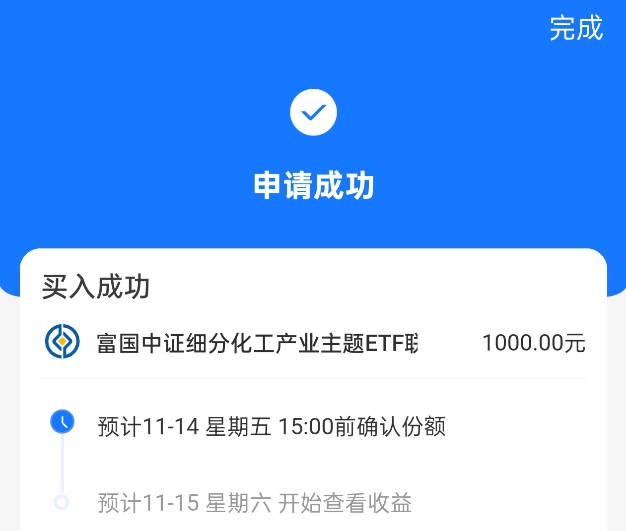 操作:$富国中证细分化工产业主题ETF联接C$今天加仓1000元,这只被动跟踪细
