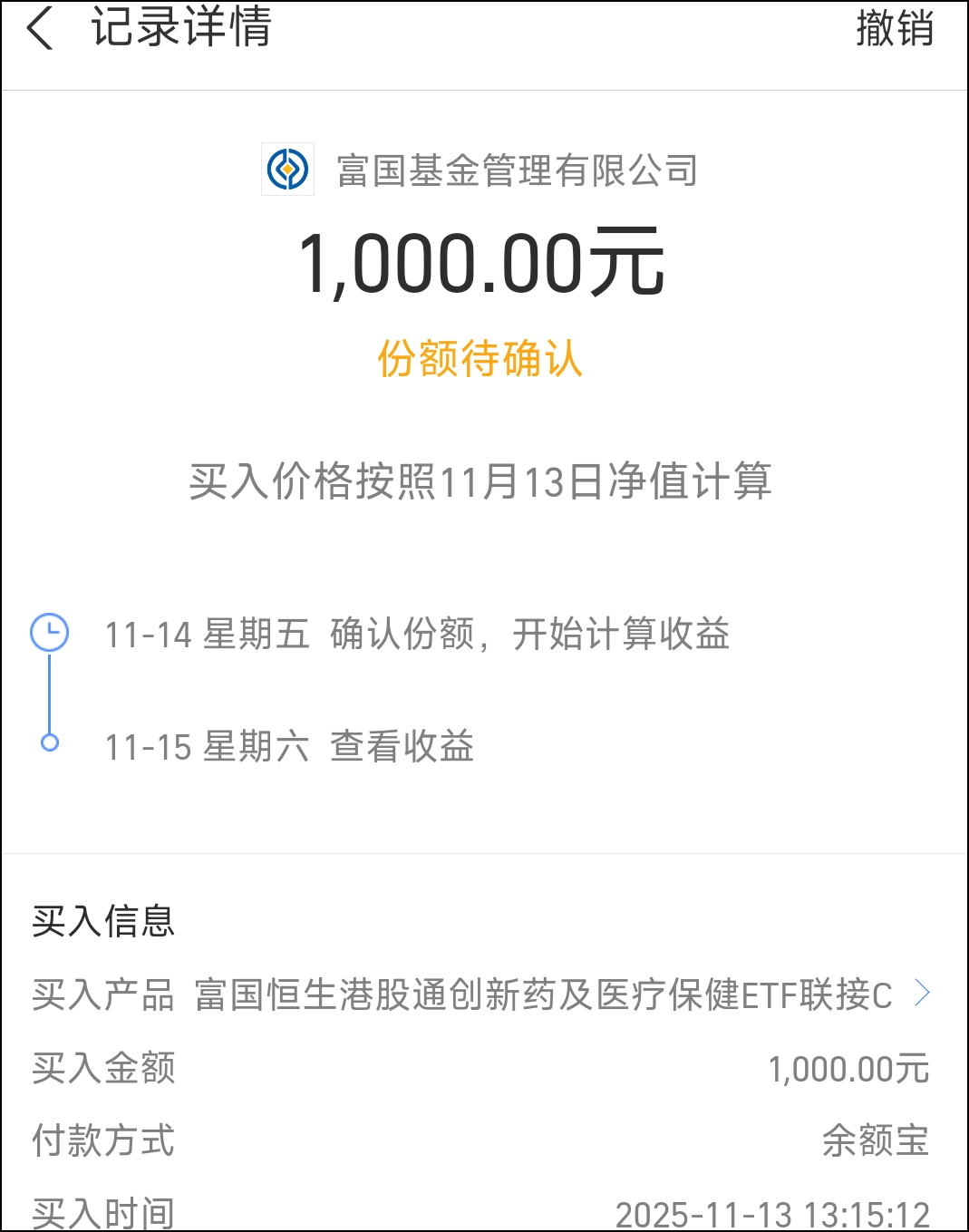今天午后又继续走强,今天的医药方向还是表现比较强势呢,科技部分分化,今天追加$富国恒生港股通创新药及医疗保健ETF发起式联接C$ $ 今天医药方向又起来了,在布局一波这个港股的医药像今天这个估值超2个多点,里面涵盖百济、信达、药明这些真正有技术、能出海的核心资产。短期相对调整差不多了,捡一些筹码,近期国产新药海外授权频频落地,证明全球竞争力正在兑现。AI+医疗也加速融合,研发效率大幅提升。后期对改板块有所支持,长期下来医药方向不断创新,还有空间,等待后续继续走起吧!