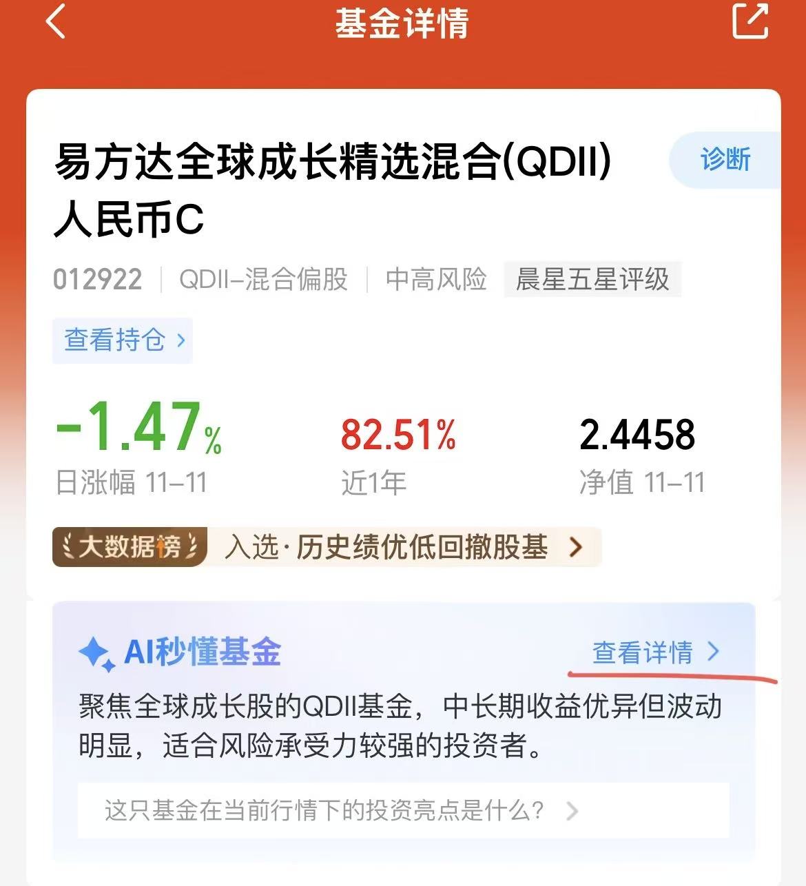 今天市场迎来不错的回暖,美股昨夜涨跌不一,可是港股又回调了,还真是不能同步呀,所以还是要多市场投资更好一些,$易方达全球成长精选混合(QDII)人民币C(OTCFUND|012922)$是持仓A股美股和港股市场科技方向的,现在全球都在支持科技发展,所以长期看涨的,年化收益率82.51%,经理管理能力也强。$华宝纳斯达克精选股票发起式(QDII)A(OTCFUND|017436)$ #特斯拉拟建新厂生产Optimus人形机器人# #段永平:投资茅台不需要太看宏观环境#