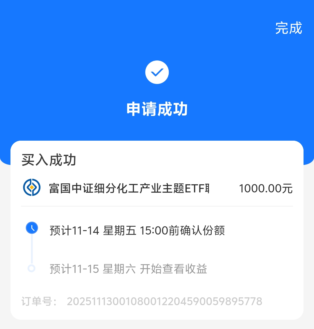 最近关注到$富国中证细分化工产业主题ETF发起式联接C$ ,发现化工板块暗藏机遇。新能源、高端制造等新兴产业都离不开化工材料支撑,刚需属性扎实。近期不少化工细分领域已现回暖,部分产品价格稳步回升,这只产品覆盖行业多个核心方向,走势紧贴指数,我平时常靠它把握行业动向。当前阶段关注化工板块正合适,今天已经加仓1000元,多一个参考选项总是好的。随着新兴产业持续发力,化工板块成长潜力值得期待,后续会持续重点关注。