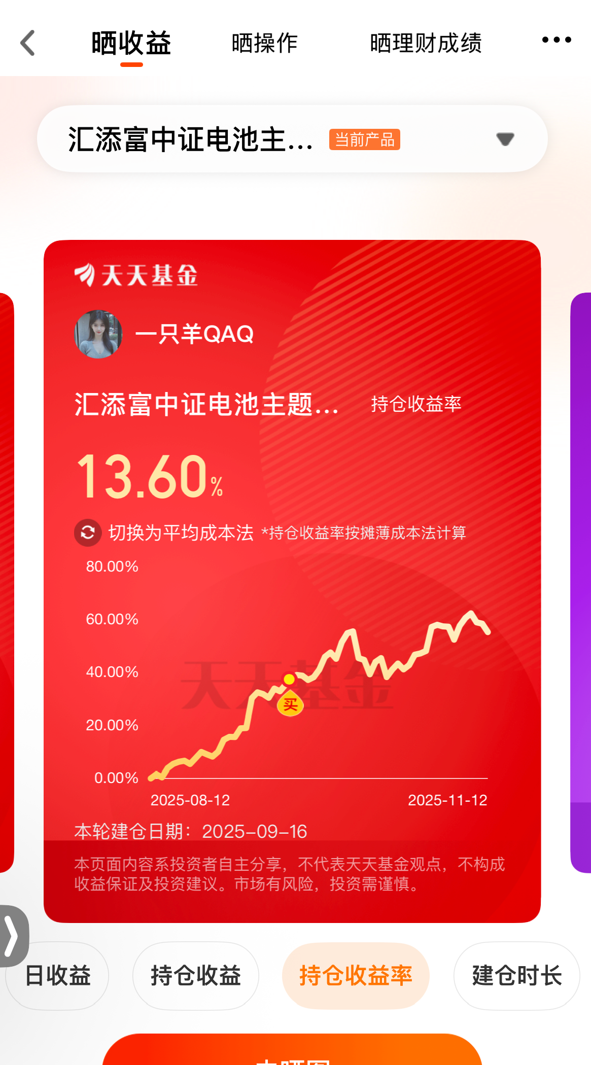 震荡市最考验什么?是坚守啊宝子们!电池板块调整后终于迎来大反攻,我持有的$汇添富中证电池主题ETF发起式联接C(OTCFUND|012863)$现在已经涨6%,收益率从13%更新后就能冲20%,这波肉吃得真香!