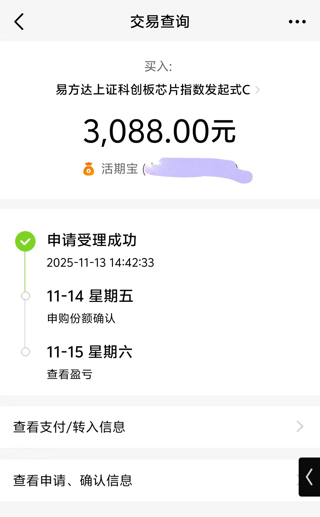 大盘今天回暖上涨,三大指数持续拉升,科创芯片板块今天表现还不错,在AI、智能驾驶、物联网等需求驱动下,国产替代和技术突破将带来巨大增长空间,这个方向长期来看发展空间还是很大的,长期看好科创芯片板块,今天加仓易方达上证科创芯片指数C3088元